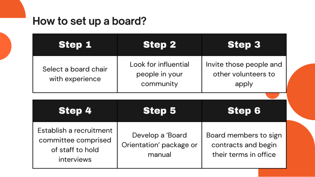 Governance: Setting Up A Board https://incubation.sivioinstitute.net/organizational-management-setting-up-a-board/?utm_source=rss&utm_medium=rss&utm_campaign=organizational-management-setting-up-a-board Wed, 12 Jun 2024 08:20:04 +0000 https://incubation.sivioinstitute.net/?p=174 An organisation’s board of trustees also referred to as a board of directors in some instances are people who volunteer to maintain, and grow the values, ensure missions are accomplished, review and amend policies, and evaluate the organisation’s performance, among other key aspects.
